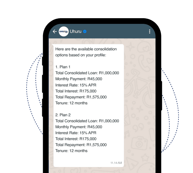 Uhuru helps you negotiate better loan repayment terms, lowering monthly payments, reducing interest rates, and preventing penalties and defaults.